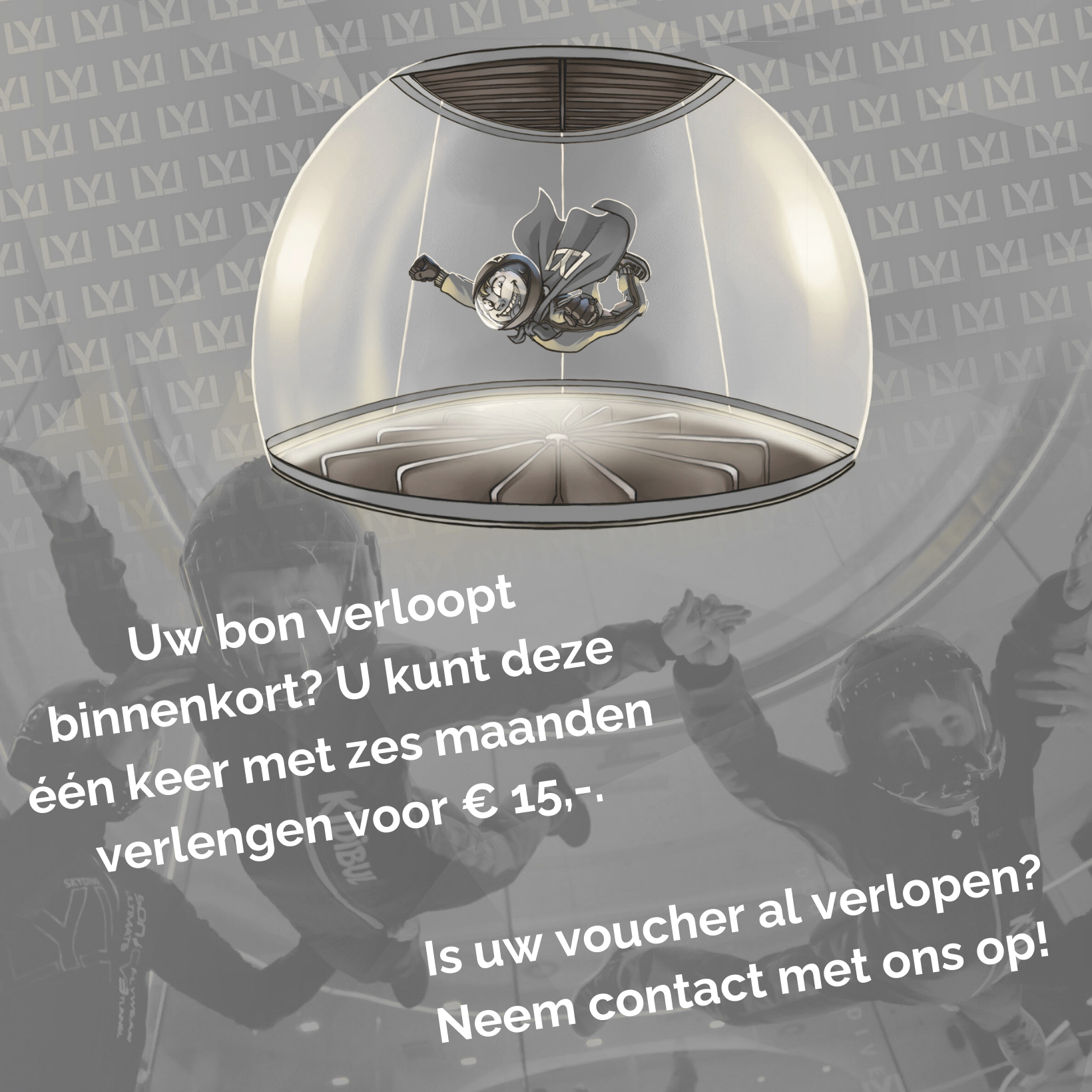 Door op “Boek” of “Koop een voucher” te klikken, kun je onze aanvullende producten kopen (zoals de Tornadovlucht etc.).
